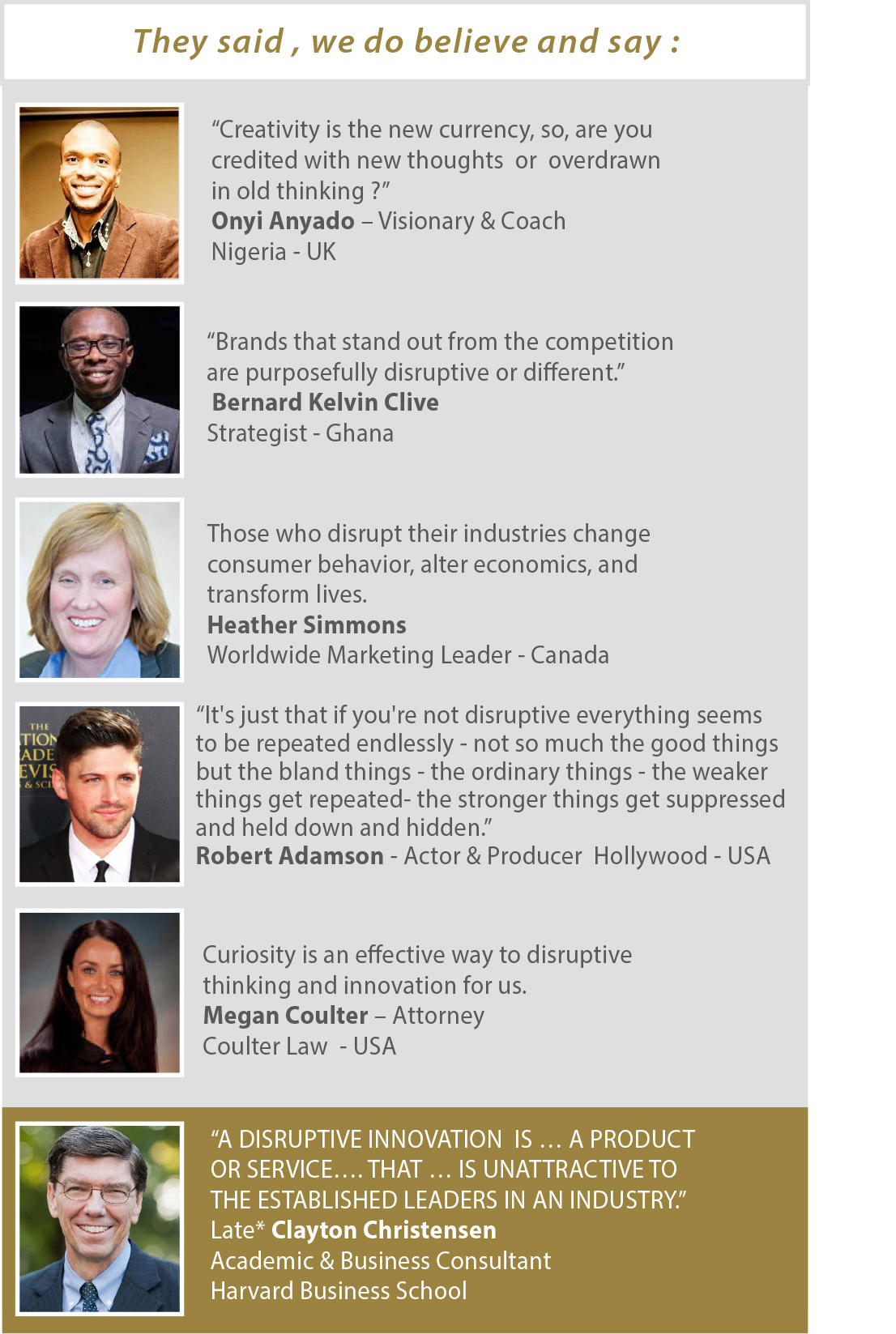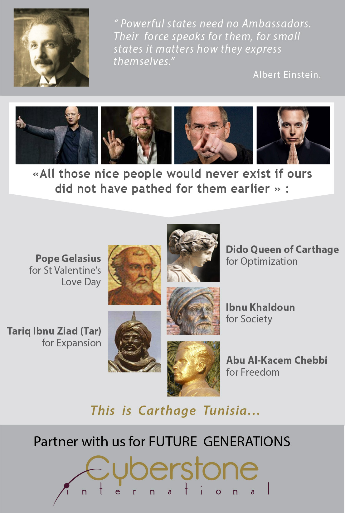 A "Northern / Southern Solidarity " Disruptive Vision & Meaning of our humble small group of Agencies, working on new widely Inernational recognized trends; with a Potential Selected Partners from the five continents ( specially for and from Africa ) operating in different sectors, a priceless Data of a rich Market Intellige nce and its Who is Who C-level & Leaders … We are as well from the North as from the South, might be from the lost & f ound land..This is our Challenge, our aspirational way and how we’d like to involve allof YOU…